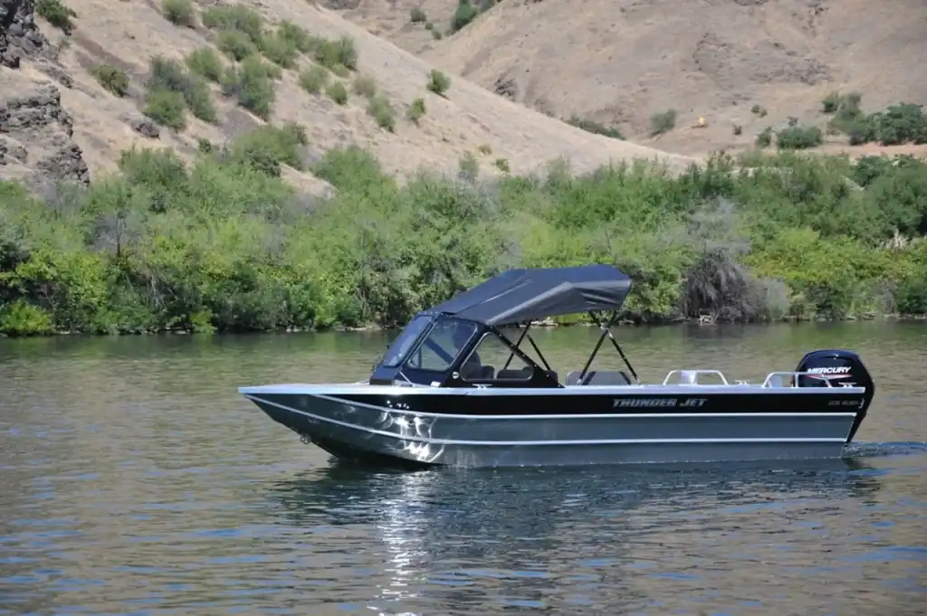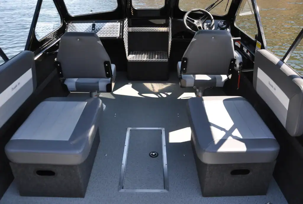 A premium performer on the outboard stage the 205 Rush heavy-gauge aluminum salmon fishing boat makes accessing remote nearshore and inland fisheries intuitive. It’s loaded with standard features like our industry-exclusive tri-structure reverse chine hull with delta keel bottom locking folding pedestal seats full-length welded side-storage trays and a welded walk-through windshield to protect the crew from the elements.