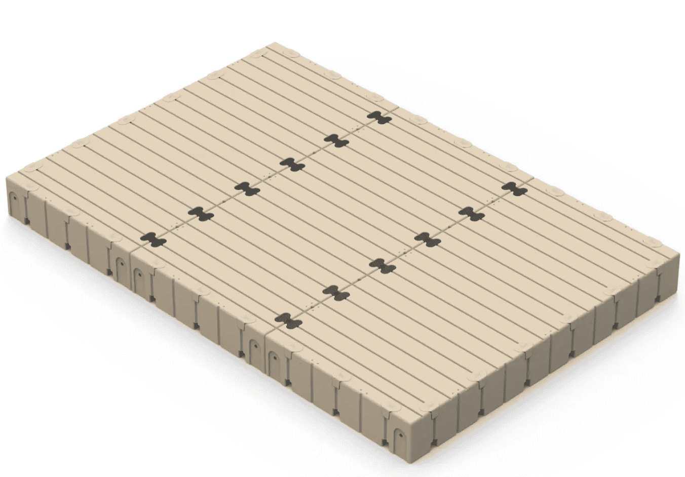 The patented EZ Dock system makes it a snap to install. Just lay out the sections bolt couplers in place and tighten the bolts. Available in beige (standard) or gray (special order). Includes part #: • 206010 60″ X 10′ Dock Section (3) • 301100 Coupler Set (12)