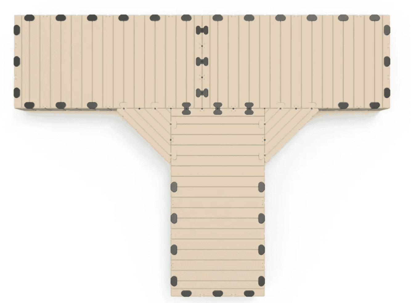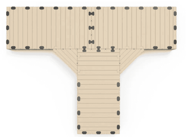 The patented EZ Dock system makes it a snap to install. Just lay out the sections bolt couplers in place and tighten the bolts. Available in beige (standard) or gray (special order). Includes part #: • 206010 60″ X 10′ Dock Section (4) • 300501 Corner Gusset (2) • 301100 Coupler Set (9)