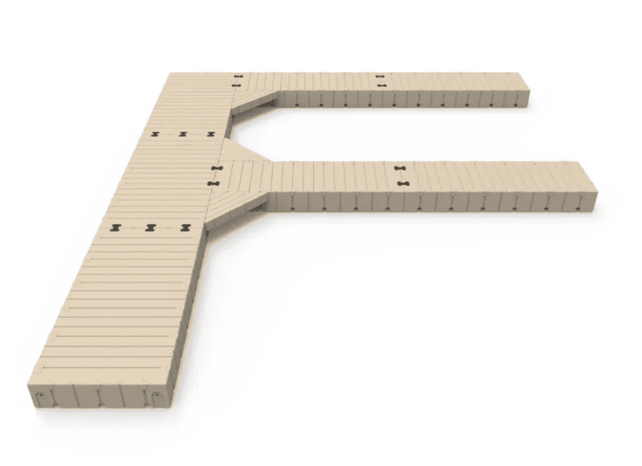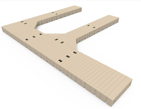 The patented EZ Dock system makes it a snap to install. Just lay out the sections bolt couplers in place and tighten the bolts. Available in beige (standard) or gray (special order). Includes part #: • 206010 60″ X 10′ Dock Section (3) • 204010 40″ X 10′ Dock Section (4) • 300501 Corner Gusset (3) • 301100 Coupler Set (14)