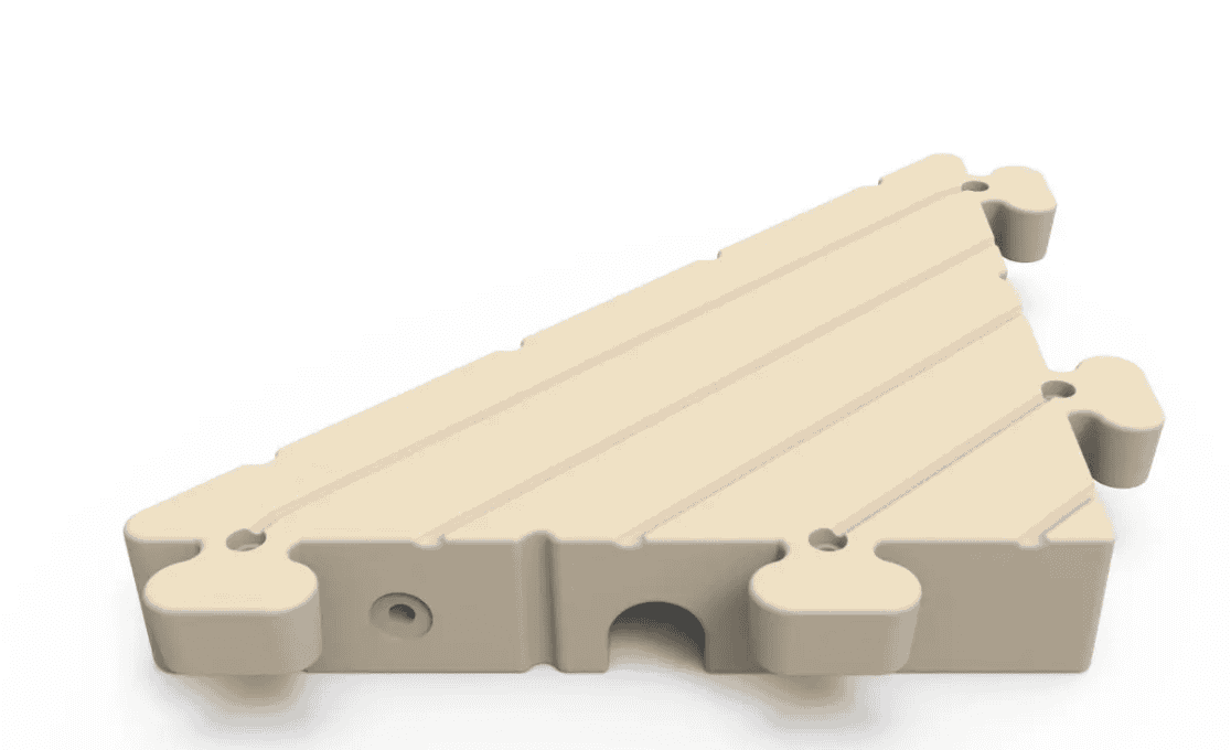 Polyethylene corner gusset adds deck surface and additional stability to dock fingers when needed.