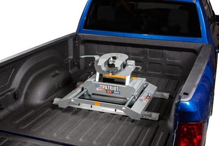 The B&W RVK3270 Patriot 18K Slider RV Hitch is a rail-mounted American made fifth wheel hitch with 12 inches of slide for optimal use with a short-bed truck.